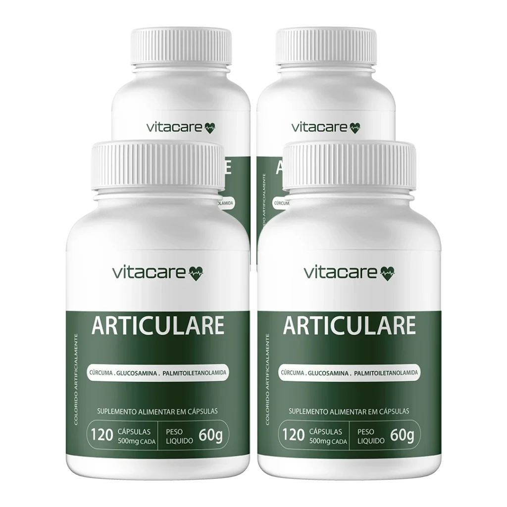 Sua fórmula não é genérica. Ela é estratégica. O Articulare combina Palmitoiletanolamida (PEA), cúrcuma, colágeno tipo II e outros ativos com respaldo científico real para reduzir a dor, combater inflamações e proteger suas articulações a longo prazo. Enquanto muitos suplementos oferecem doses baixas ou fórmulas improvisadas, o Articulare entrega ingredientes de alta absorção, com ação sinérgica, desenvolvidos para resultados concretos.